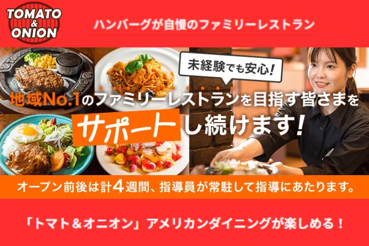 国内唯一のファミリーレストランFC 「トマト&オニオン」FC加盟店募集(すかいらーくグループで安定収益×高リピート率)