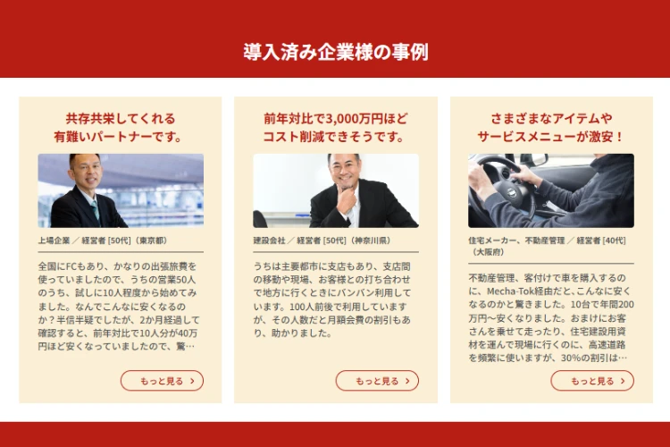 | 競合 | 法人向けの節税・経費削減サービスは多数ありますが、「社会保険料の支払い手段」に特化し、クレジットカード払いを通じてマイルやポイントの獲得を支援するサービスはほぼ皆無です。 一部「支払い.com」などの立替系代行サービスは存在するものの、Mecha-Tokは動画や教育コンテンツを通じて認知と理解を促し、導入ハードルを大幅に下げています。 競合不在かつ差別化された新提案で、開拓しやすい領域です。 |
