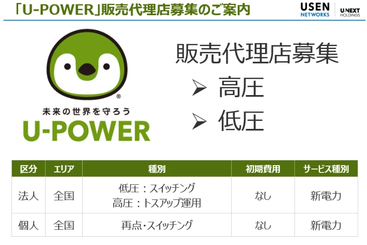 「U-POWER」CO₂削減を実現する電力ソリューションの代理店募集【法人限定】 企業情報
