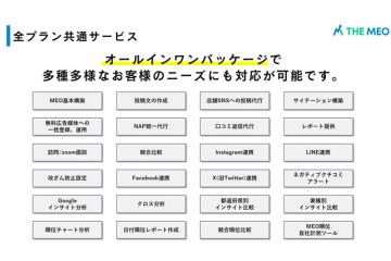 また当サービスは、MEOの基本構築から分析などオールインパッケージになりますので、MEOの基本知識のないお客様も、安心して導入いただけます。全国の店舗様にご提案できますのでお気軽にお問合せください。