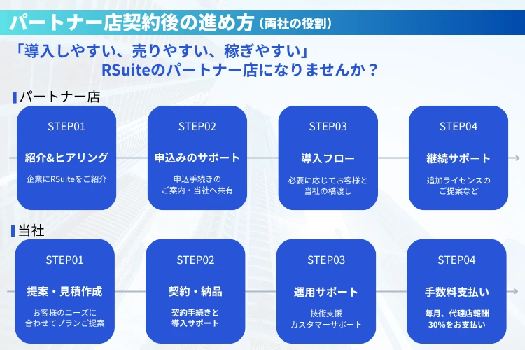 本募集は「RSuite」を取り扱う法人・個人事業主向けの販売代理店制度です。