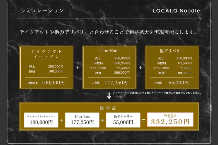 「Nontitle」発! "売上100万円実績" LOCALO Noodle デリバリーFC加盟店募集 収益モデル