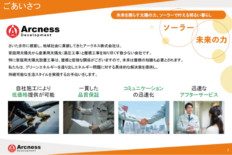 自社で太陽光施工のノウハウがなく機会損失を感じていた同社は、「アークネス株式会社」の紹介代理店制度に参加。