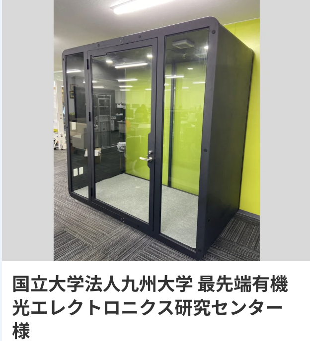 | 市場性 | 新型コロナの影響によりテレワーク、オンライン商談が普及したことで個室型ワークブースのニーズが拡大しています。オフィスだけでなく教育機関、交通機関など様々な場所で設置が進んでいます。 |