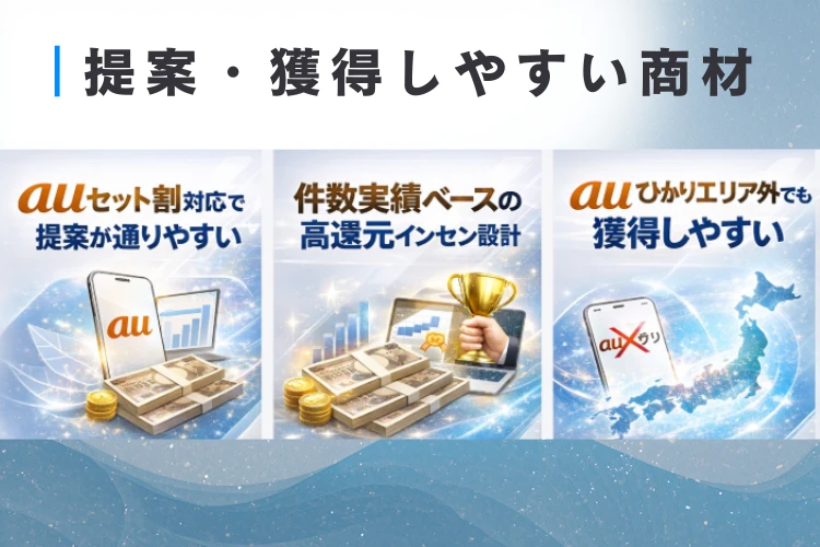 訪問・電話・紹介など、既存の営業チャネルを活かしやすく、通信代理店や営業会社が長期的に扱いやすい商材として位置づけられています。