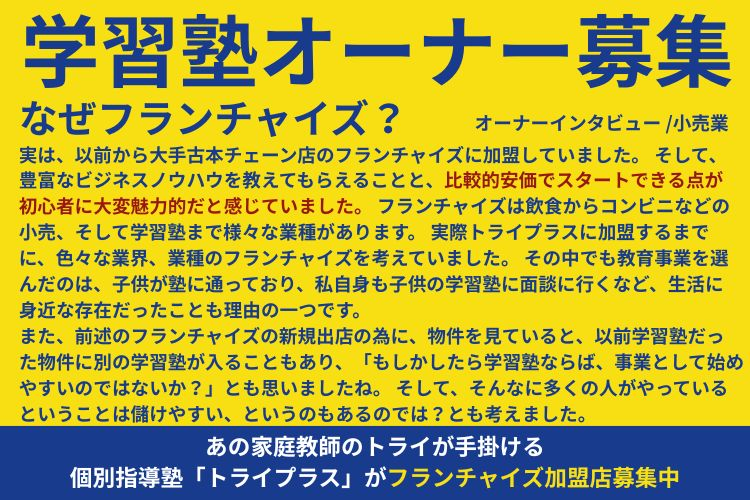 最大100万円の広告宣伝費を本部が負担!個別指導塾トライプラス ビジネス概要