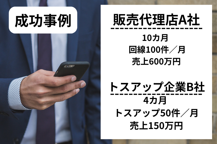 強み | 代理店が「案内・紹介」だけで収益化できる仕組みを構築している点です。本部がクロージングや契約を担当するため、代理店は営業経験が浅くても成果を出しやすいモデルです。また、金融・保険の専門知識を持つスタッフが対応するため、顧客満足度が高く、成約率も安定しています。実際に導入した代理店の中には、短期間で複数件の成約につなげた事例もあり、成果の出やすさが他社にない魅力です。 |