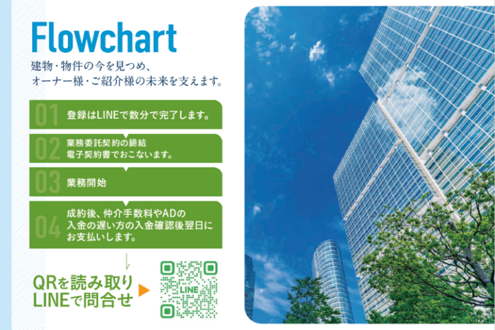 紹介者は、住宅・オフィス物件を探す顧客や取引先を紹介するだけで報酬が発生。契約書作成や交渉などの行為はすべて本部が代行するため、法的リスクや専門知識は不要です。