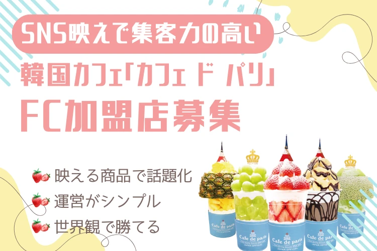 SNS映えで自動集客!韓国発「カフェ ド パリ」FC|初期投資1000万円|1年回収モデル
