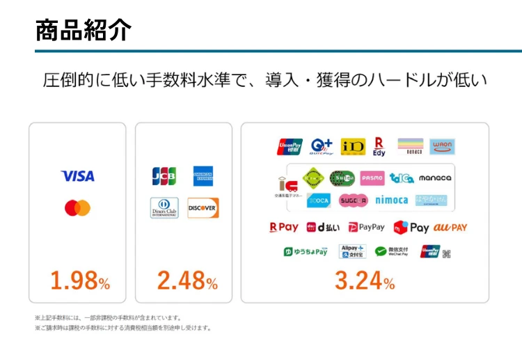 主要カード1.98%〜、価格で選ばれやすい代理店モデル