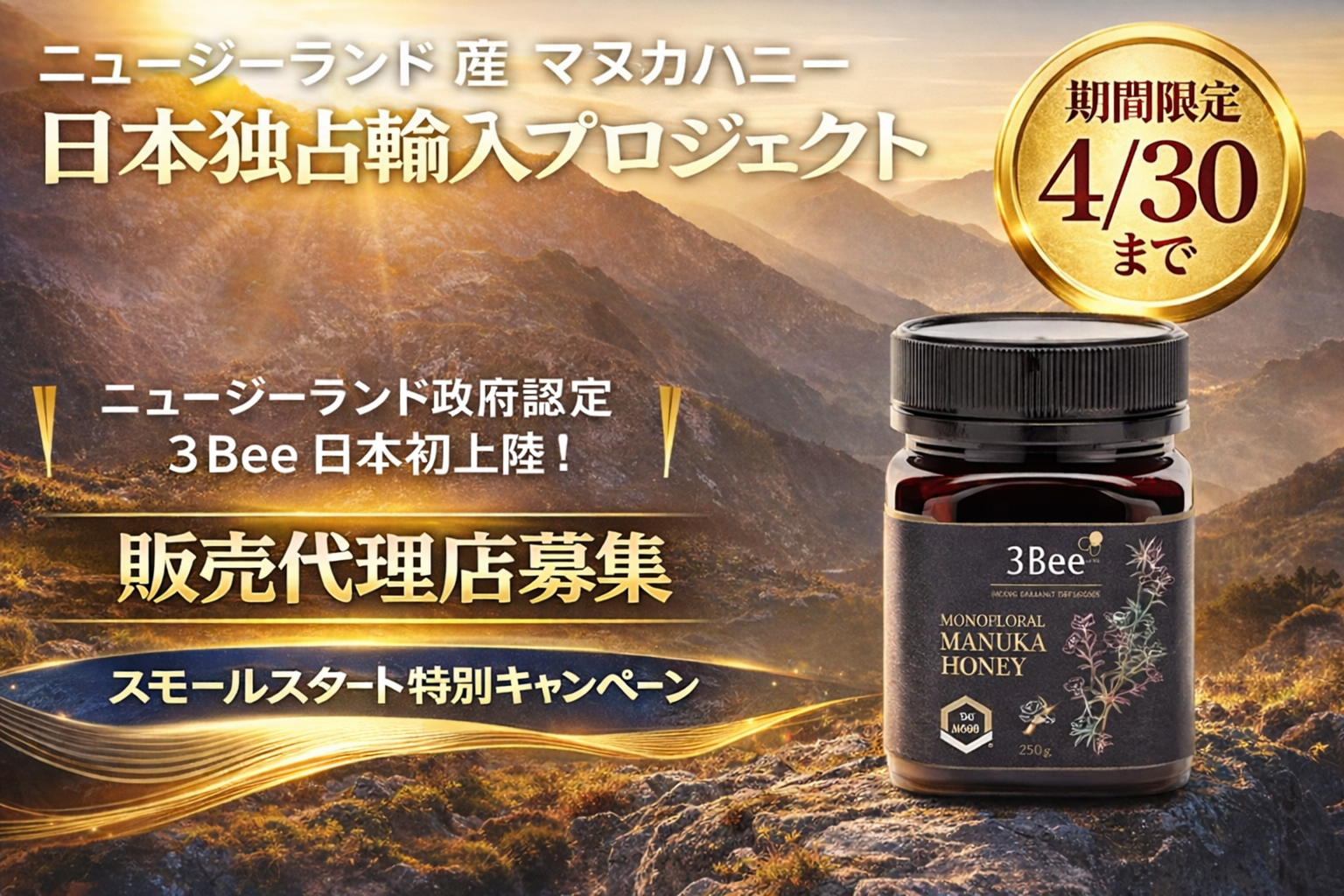 日本初上陸!「マヌカハニー3Bee」一次代理店募集 ビジネス概要