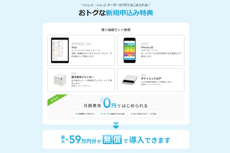 現在、対象条件を満たした店舗様に対し、1年間の利用料が無料となるキャンペーンを実施中です。さらに、対応プランにより、必要機器(iPad、レシートプリンター、Wi-Fiルーター等)の無償貸与にも対応しています(※台数・条件あり)。初期導入のコストを抑えやすく、飲食店様にとっても導入ハードルが低いため、提案がしやすい商材となっています。全国対応のサポート体制や、研修・マニュアル等の支援環境も整っており、飲食DX化を支援する法人向けサービスとして注目されています。