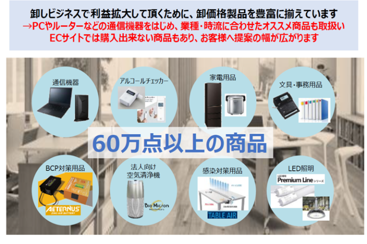 株式会社ノジマの子会社であるアイ・ティー・エックス株式会社は、NTT東西をはじめとした大手通信キャリアの1次代理店として、法人・SOHO向けにインターネット回線や関連機器を提供しています。本代理店制度では、「フレッツ光ネクスト」や「クロス」を中心に、法人向けに通信回線提案・契約を行うビジネスモデルです。回線取次に加え、通信機器やセキュリティ対策、感染対策用品など多彩な周辺商材の販売も可能で、1社で複数のニーズに対応可能。