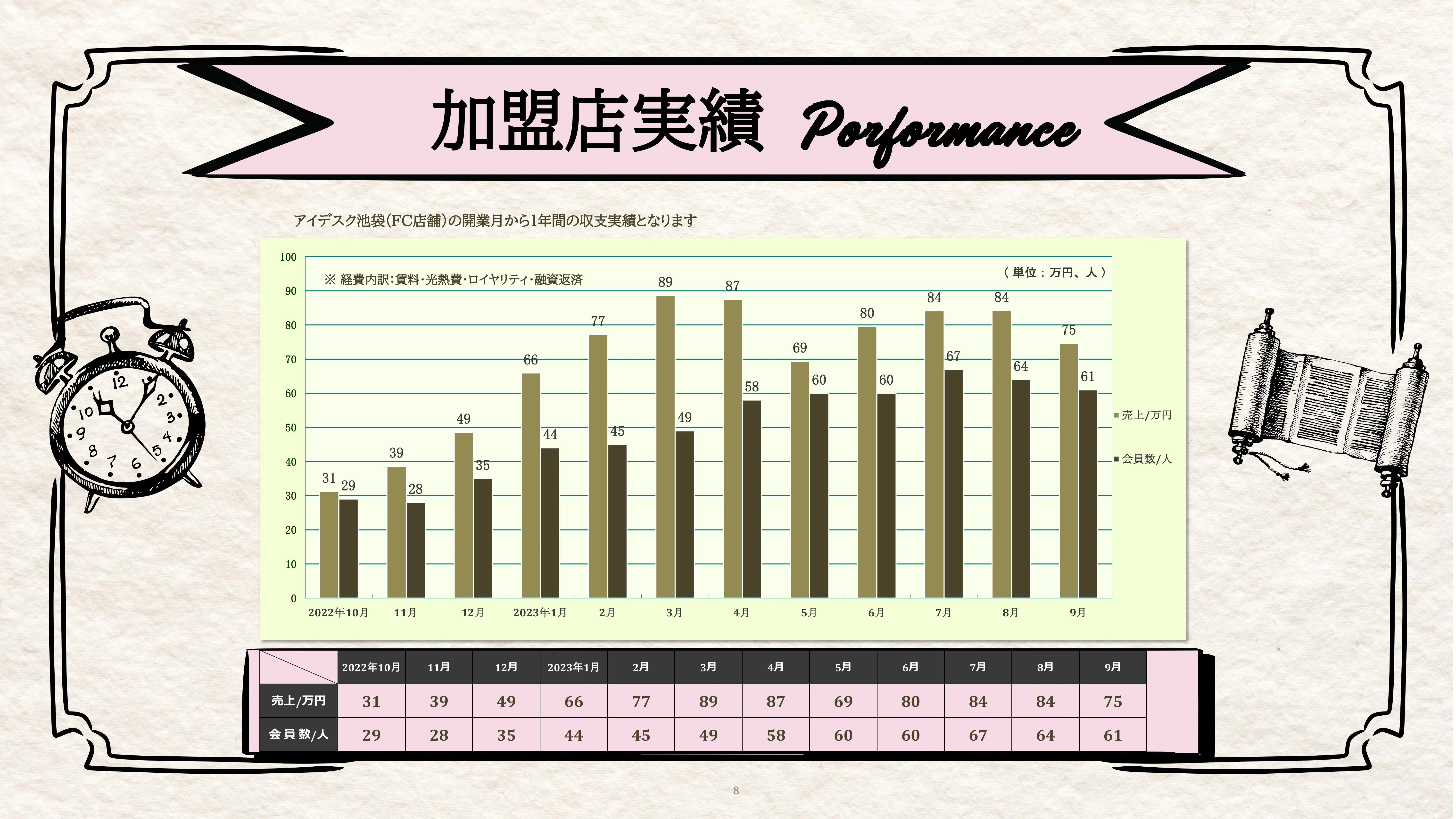 | マージン率 | 売上に対して月額ロイヤリティ(例:月3万〜5万円)が設定されています。詳細はご興味ある方へ資料にてご案内いたします。ご興味あればお気軽に資料請求お願いします。 |